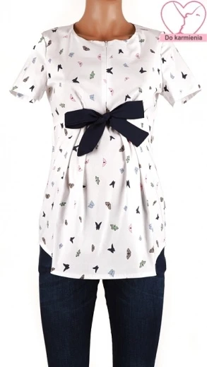 Rasedate pluus. Võimaldab imetada. Kangal erivärvi pisikesed liblikad.